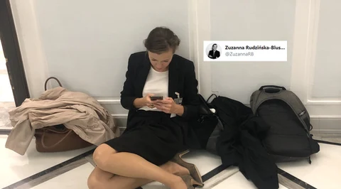 Zuzanna Rudzińska-Bluszcz na sejmowej podłodze. Zdjęcie wywołało lawinę komentarzy