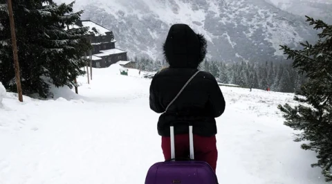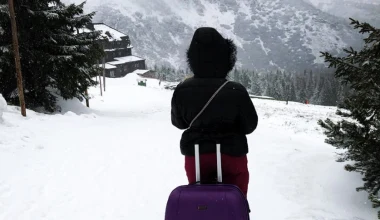 Turystka z walizką. Zadziwiający widok na szlaku w Karkonoszach