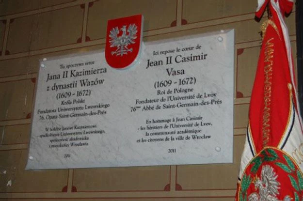 Co łączy Wrocław z Paryżem i Lwowem? Osoba Jana Kazimierza. To właśnie w hołdzie temu królowi Polski dedykowana jest pamiątkowa tablica umieszczona w znanym paryskim kościele Saint-Germain-des-Prés.