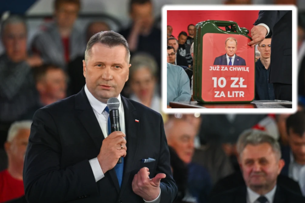 W pewnym momencie Przemysław Czarnek wyjął kanister z wizerunkiem premiera Donalda Tuska i napisem "Już za chwilę 10 zł za litr", będący - zdaniem posła - metaforą tego, jak wkrótce będzie wyglądała sytuacja materialna Polaków.