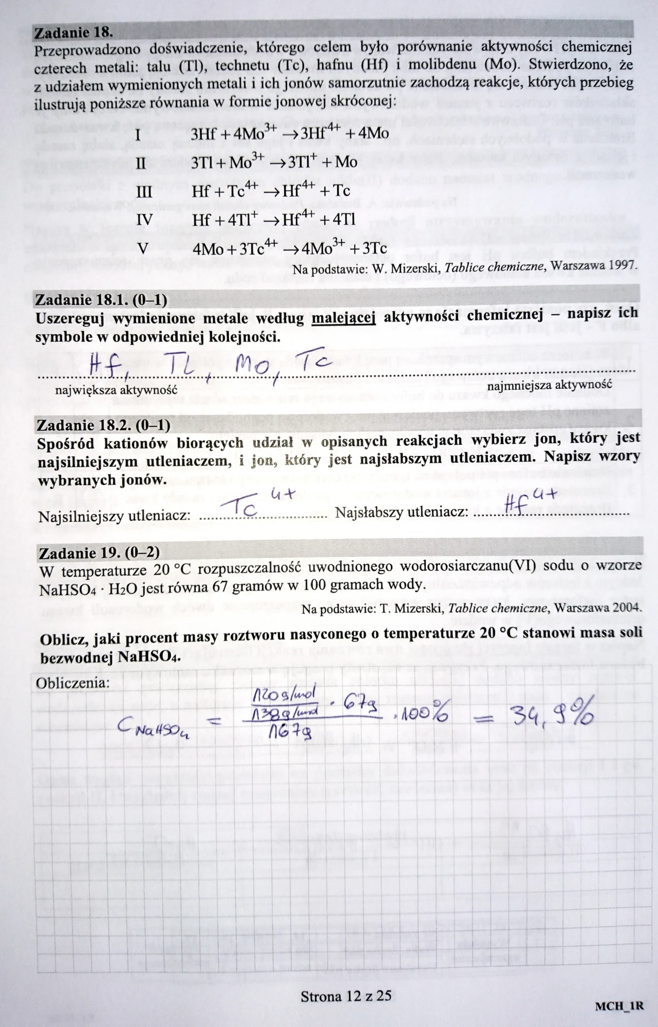 Chemia (poziom rozszerzony) - arkusz CKE (pobierz tutaj)PONIŻEJ PUBLIKUJEMY ARKUSZ CKE - CHEMIA (poziom rozszerzony) - WRAZ Z NIEOFICJALNYMI ODPOWIEDZIAMI. Wciśnij F5, strona nie odświeża się automatycznie!