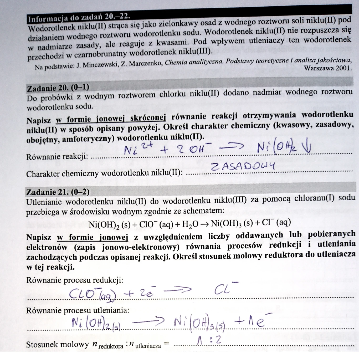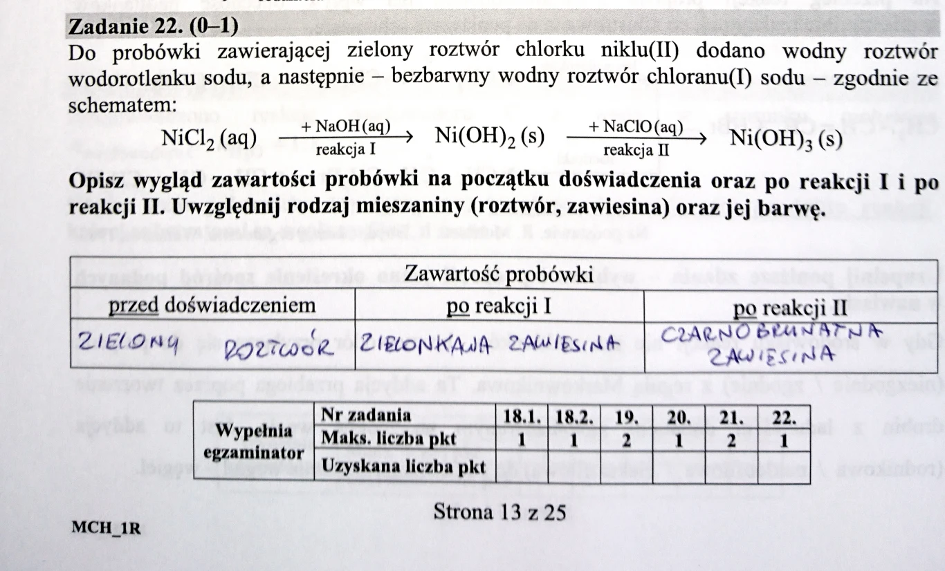 W tym zadaniu utlenianiu poddany jest wodorotlenek niklu(II) do wodorotlenku niklu(III), co wynika z treści samego zadania.