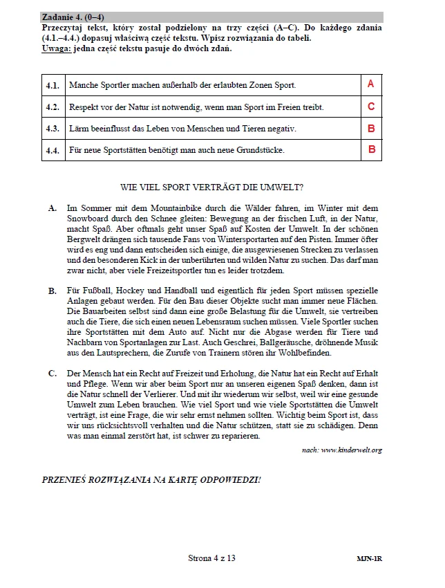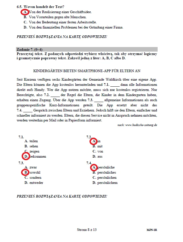 Język niemiecki (poziom rozszerzony) - arkusz CKE (pobierz tutaj) + transkrypcja (pobierz tutaj)PONIŻEJ PUBLIKUJEMY ARKUSZ CKE - JĘZYK NIEMIECKI (poziom rozszerzony) - WRAZ Z NIEOFICJALNYMI ODPOWIEDZIAMI. Wciśnij F5, strona nie odświeża się automatycznie!