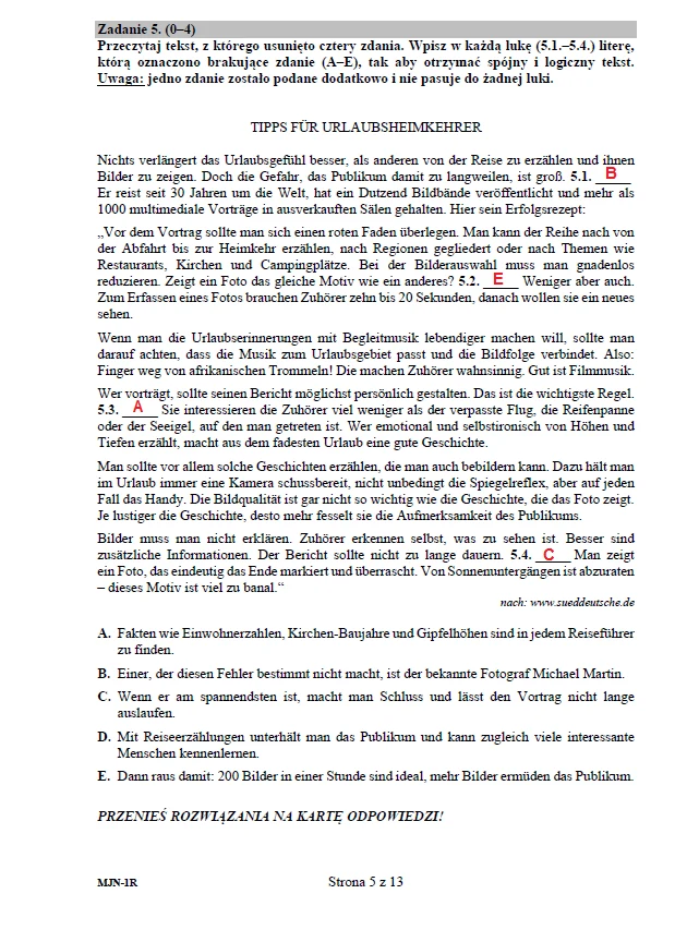 Język niemiecki (poziom rozszerzony) - arkusz CKE (pobierz tutaj) + transkrypcja (pobierz tutaj)PONIŻEJ PUBLIKUJEMY ARKUSZ CKE - JĘZYK NIEMIECKI (poziom rozszerzony) - WRAZ Z NIEOFICJALNYMI ODPOWIEDZIAMI. Wciśnij F5, strona nie odświeża się automatycznie!