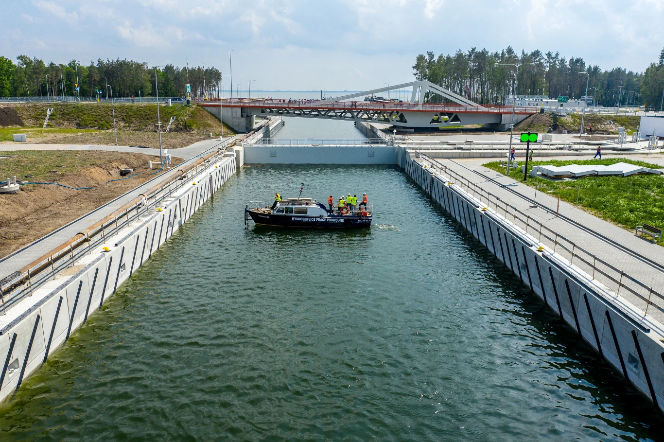 - Woda jest w całym kanale żeglugowym i oczywiście w samej śluzie. Poza tym będą mogli zobaczyć cały zarys budowli - falochrony, dwa mosty obrotowe, w tym jednym na pewno będzie można przejść, przejechać autem lub rowerem, budynek Kapitanatu Nowy Świat i miejsca postojowe od strony Zalewu Wiślanego. Pojawia się też coraz więcej docelowej roślinności. Najlepszy widok będzie z jednego ze specjalnie przygotowanych punktów widokowych, znajdujących się po zachodniej stronie kanału - podkreśliła Magdalena Kierzkowska.