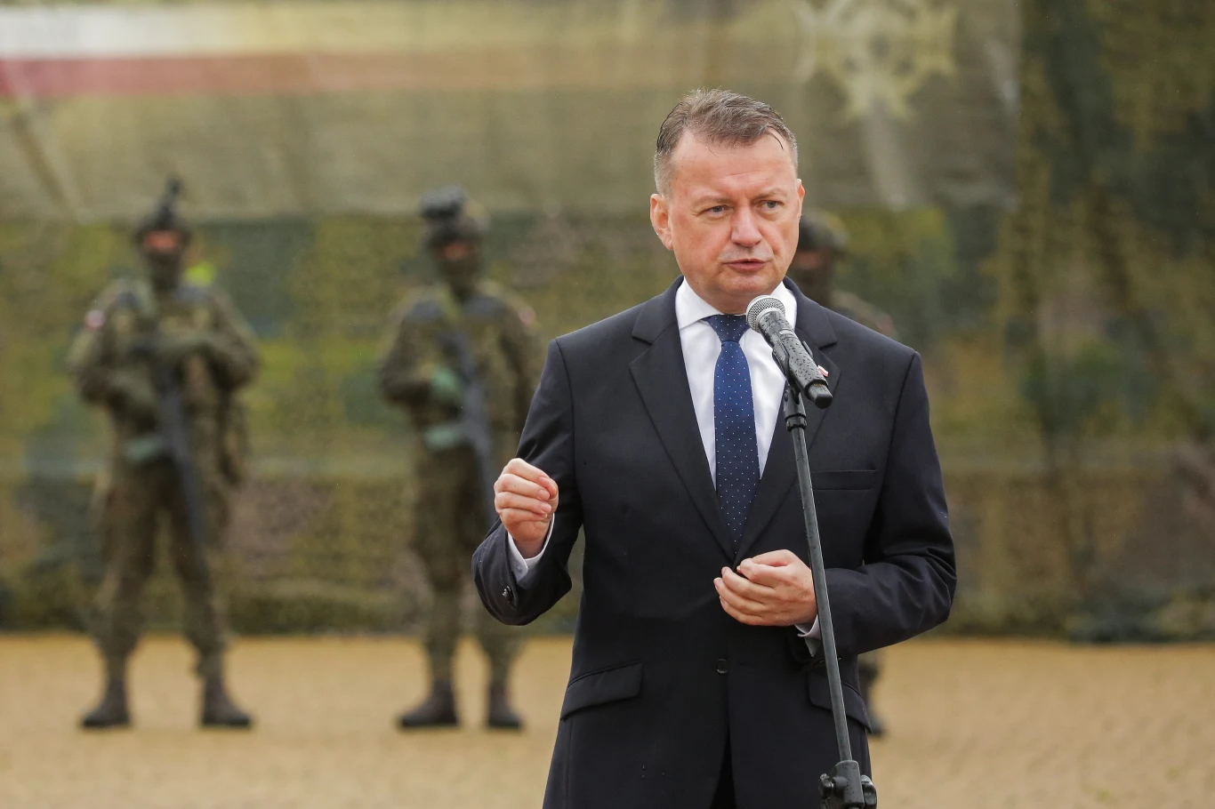 Szef MON Mariusz Błaszczak podczas konferencji prasowej w Augustowie (woj. podlaskie) ogłosił utworzenie batalionu saperów. - Wojsko Polskie wraca do Augustowa - powiedział w swoim wystąpieniu. - Zachęcam do tego, żeby wspólnie budować bezpieczeństwo - dodał.