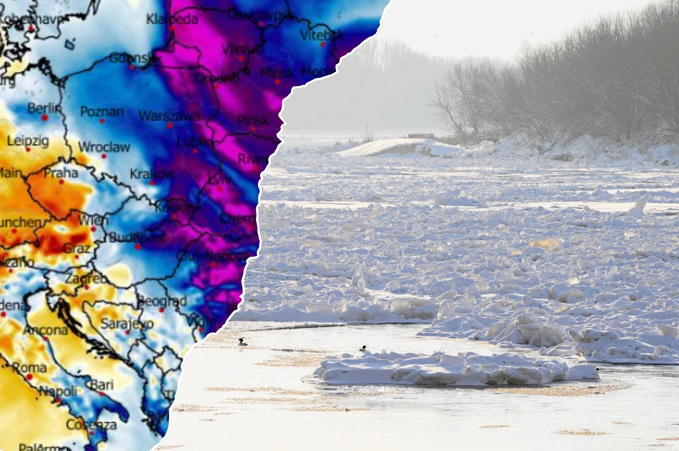 Polska podzieli się na mroźny wschód, gdzie nawet w ciągu dnia miejscami będzie -11, a w centrum około -5 stopni oraz znacznie cieplejszy zachód, gdzie termometry pokażą do trzech stopni powyżej zera.