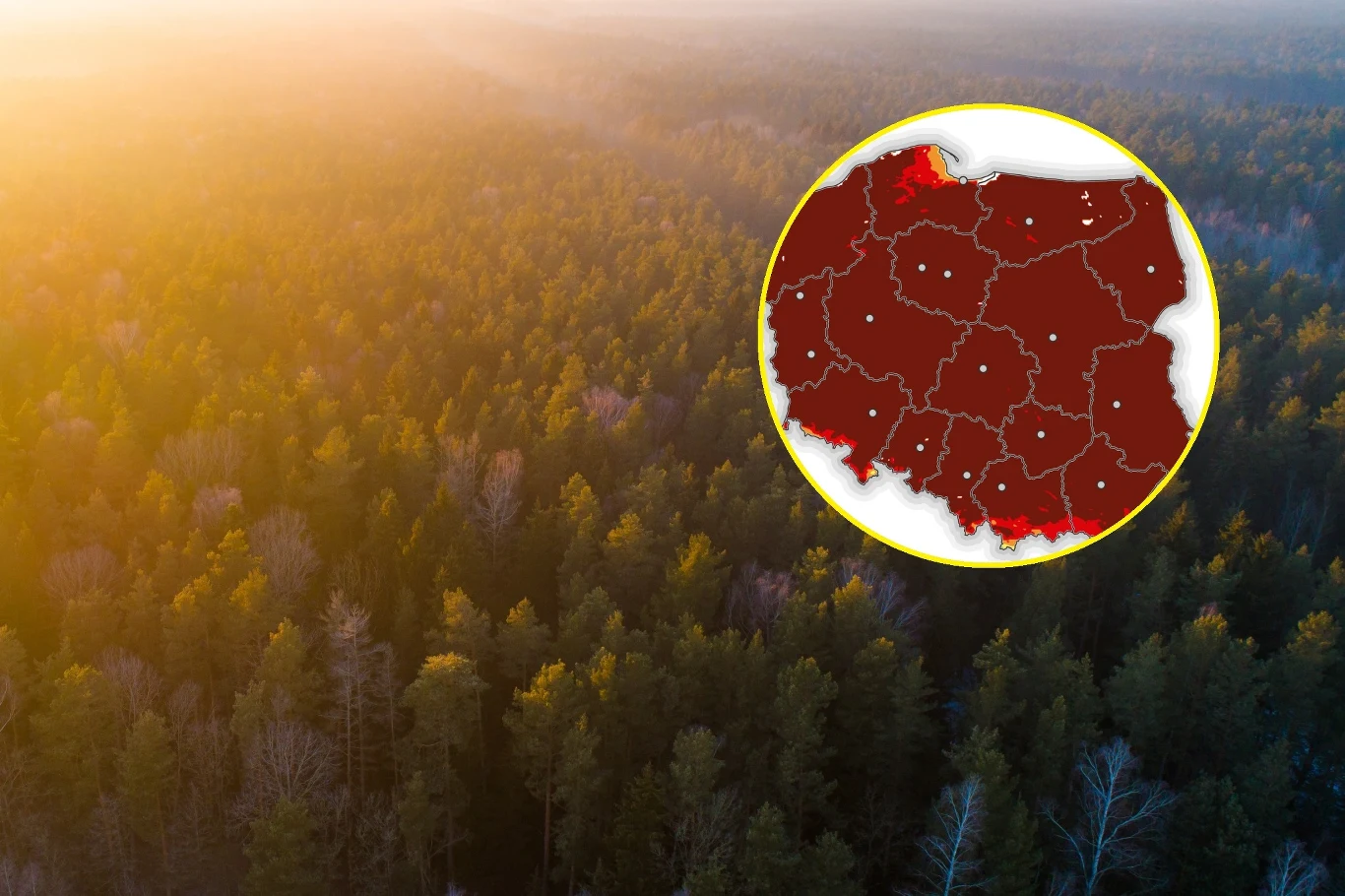Jedynie na południowych krańcach Polski, w górach, w rejonie Zatoki Gdańskiej oraz północno-wschodniej części Pomorza stopień zagrożenia pożarami lasów jest bardzo wysoki i wysoki. We wszystkich pozostałych miejscach zagrożenie jest ekstremalne.