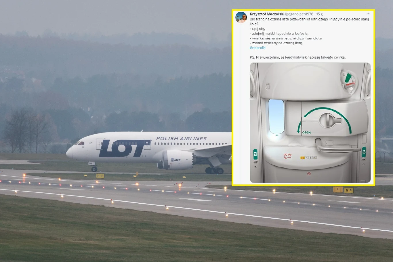 Sytuacja miała miejsce na pokładzie samolotu lecącego ze Stanów Zjednoczony do Warszawy i została w humorystyczny sposób przedstawiona na Twitterze przez rzecznika prasowego LOT Krzysztofa Moczulskiego.