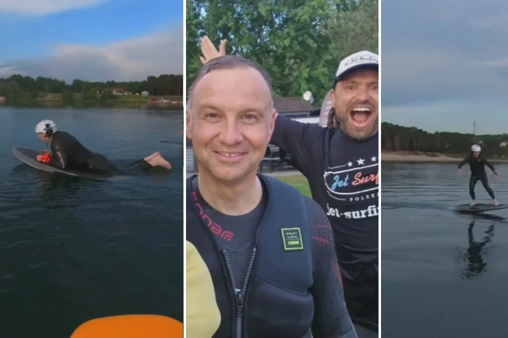 Prezydent Andrzej Duda znany jest z zamiłowania do nart. Przed sezonem najwyraźniej przyszła pora na naukę nowego sportu. Do sieci trafiło nagranie, na którym widać, jak Andrzej Duda uczy się jet surfingu na elektrycznej desce. Film zarejestrowano nad zalewem Kryspinów w gminie Liszki pod Krakowem.