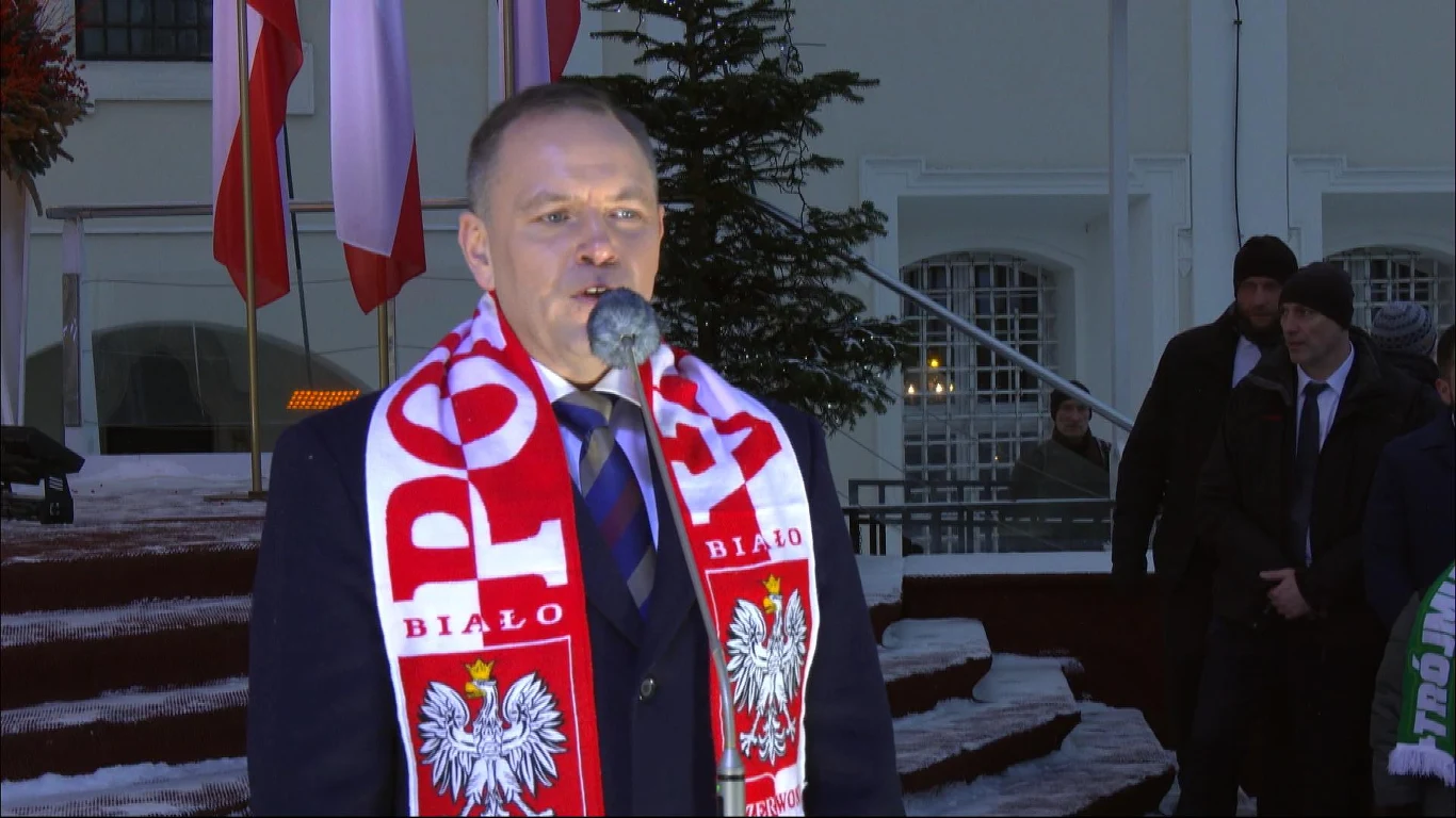 Prezydent dodał również, iż "pod biało-czerwoną flagą jest miejsce dla każdego" i wymienił po kolei nazwy klubów piłkarskich. - Dla tych którzy przyjechali z Kędzierzyna-Koźla, dla kibiców Wisły, Cracovi, Arki, Legii, Lecha Poznań, Jagielonii Białystok. Wszystkich Was pozdrawiam - mówił Nawrocki.