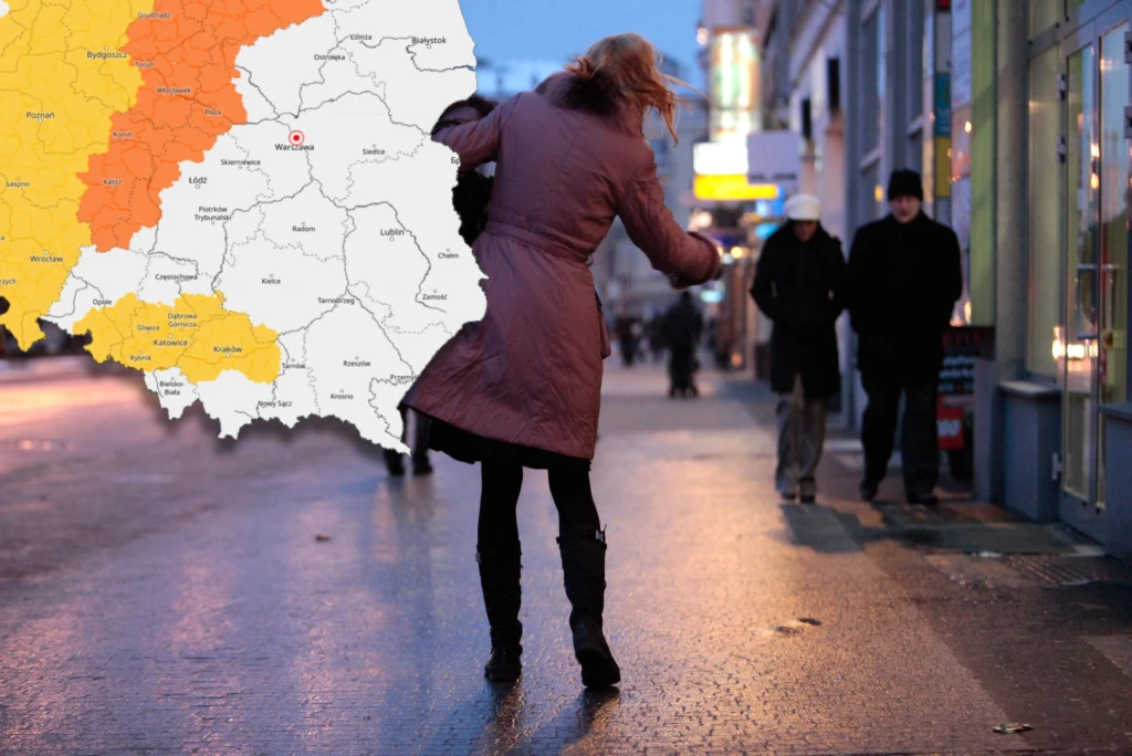 Największe zagrożenie słabymi opadami marznącego deszczu lub mżawki wystąpi w centrum i na północy Polski. Z powodu możliwej gołoledzi wydano pomarańczowe alerty dla województw: