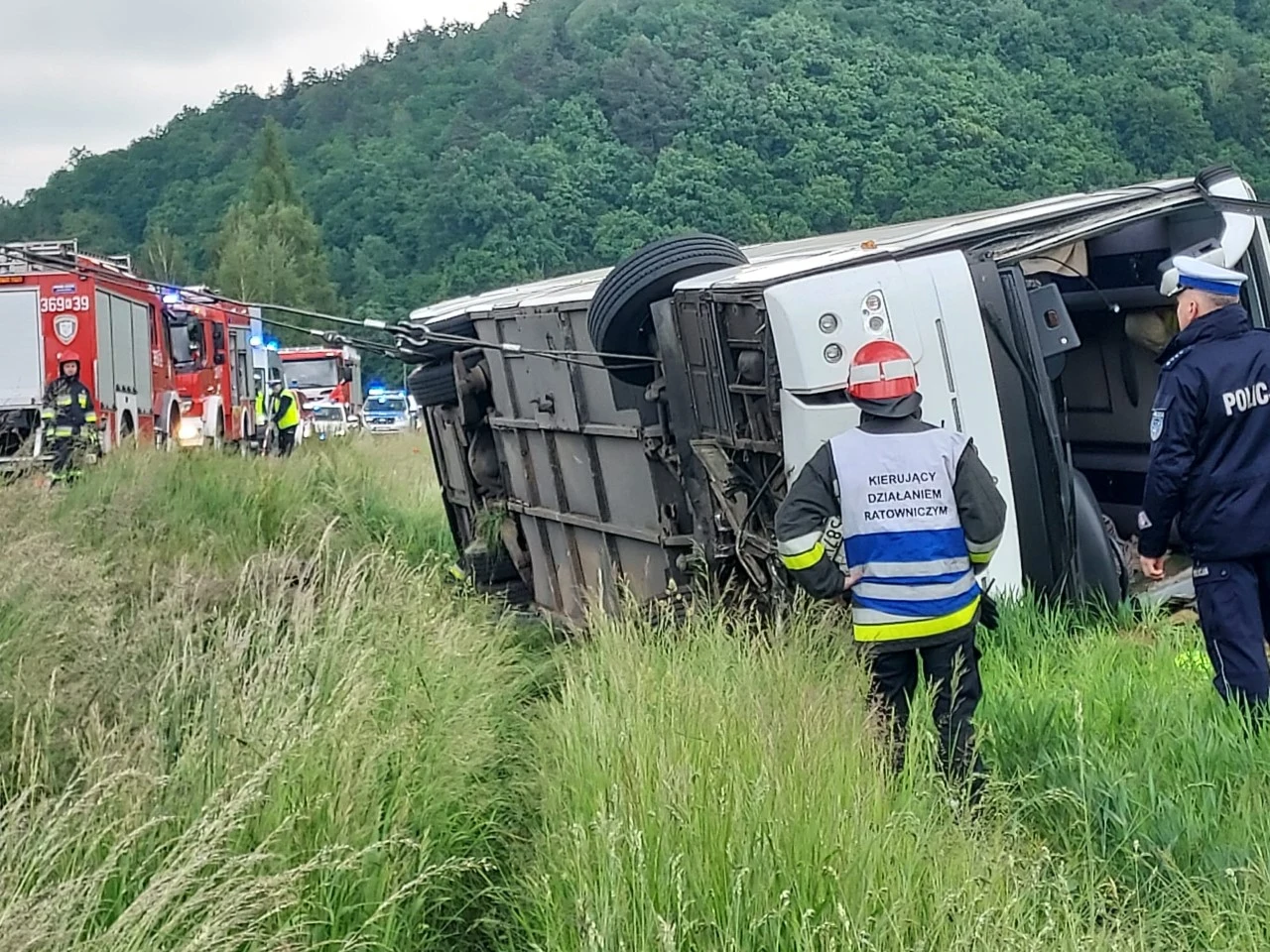 - Autobus, którym podróżowało 27 osób, w tym 23 dzieci z VII klasy szkoły podstawowej zjechał na przeciwległy pas ruchu, wjechał do rowu i przewrócił się na lewy bok - przekazał rzecznik policji w Tarnowie Paweł Klimek. - Na ten moment nie można powiedzieć, co spowodowało wypadek - dodał.