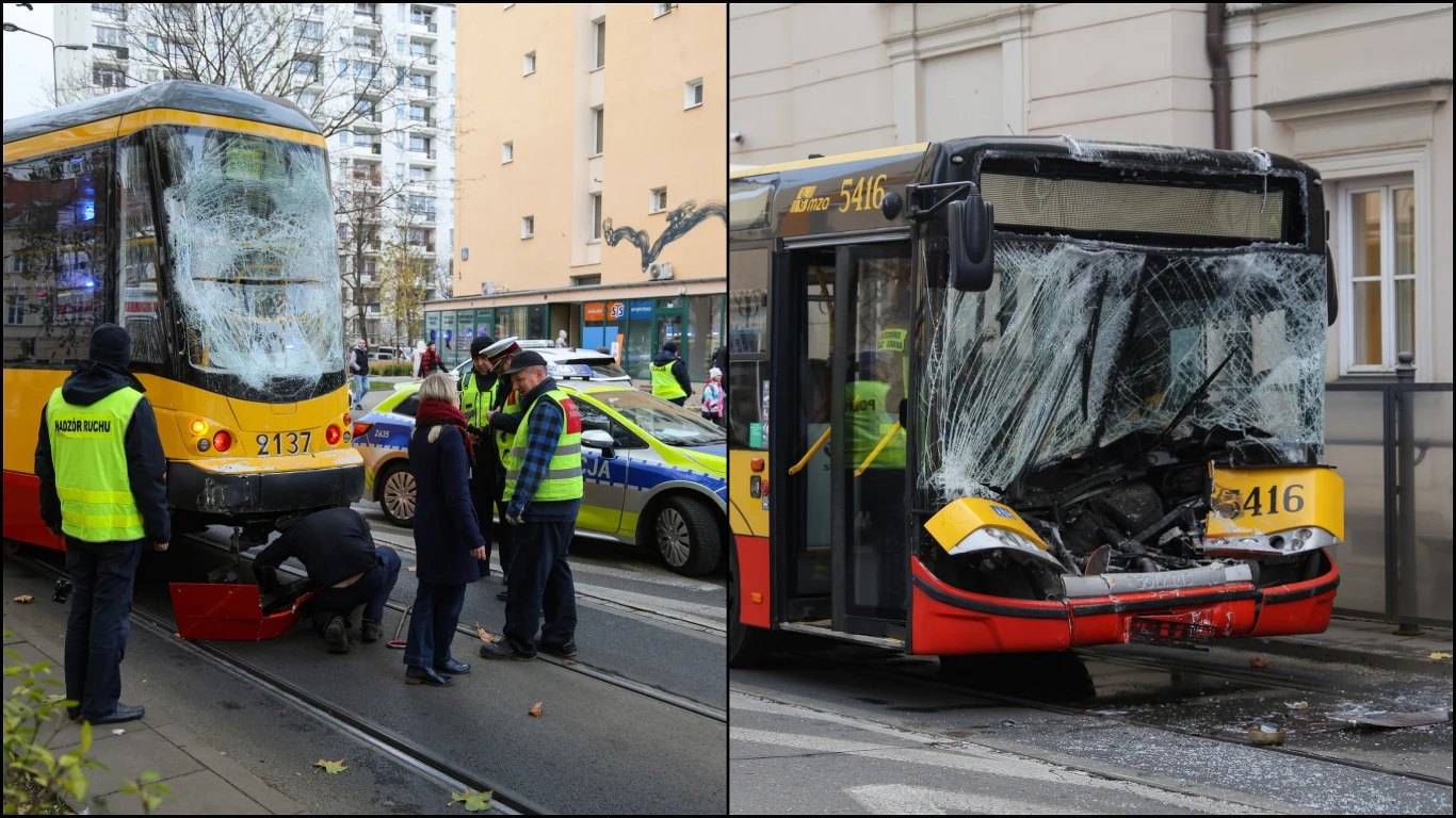 Warszawa. Zderzenie tramwajów i autobusu, 16 osób poszkodowanych