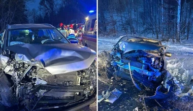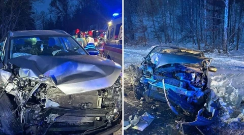 Czołowe zderzenie na drodze krajowej. Siedem osób poszkodowanych