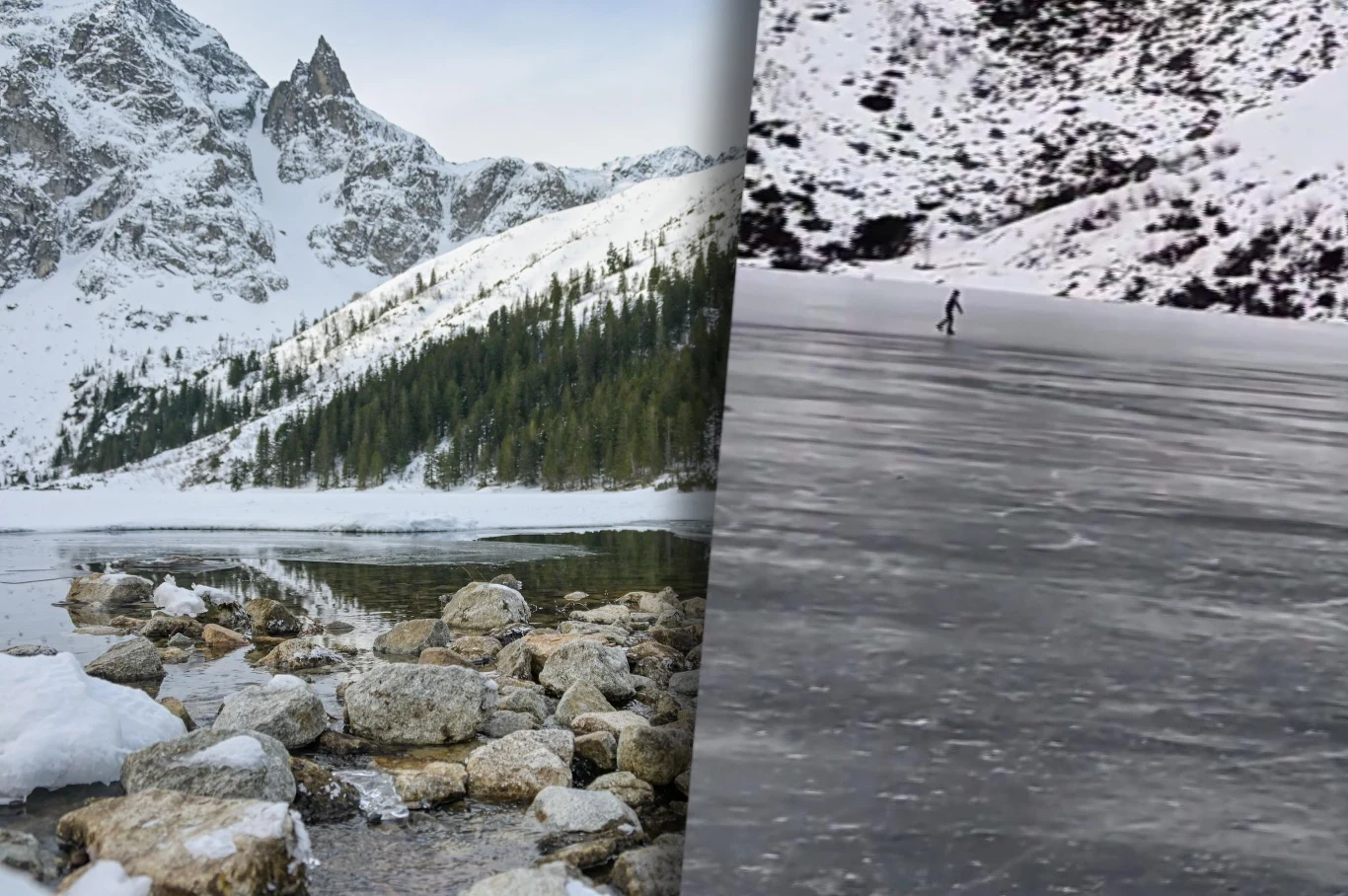 - Turysta jeździł na łyżwach po zamarzniętym Morskim Oku.