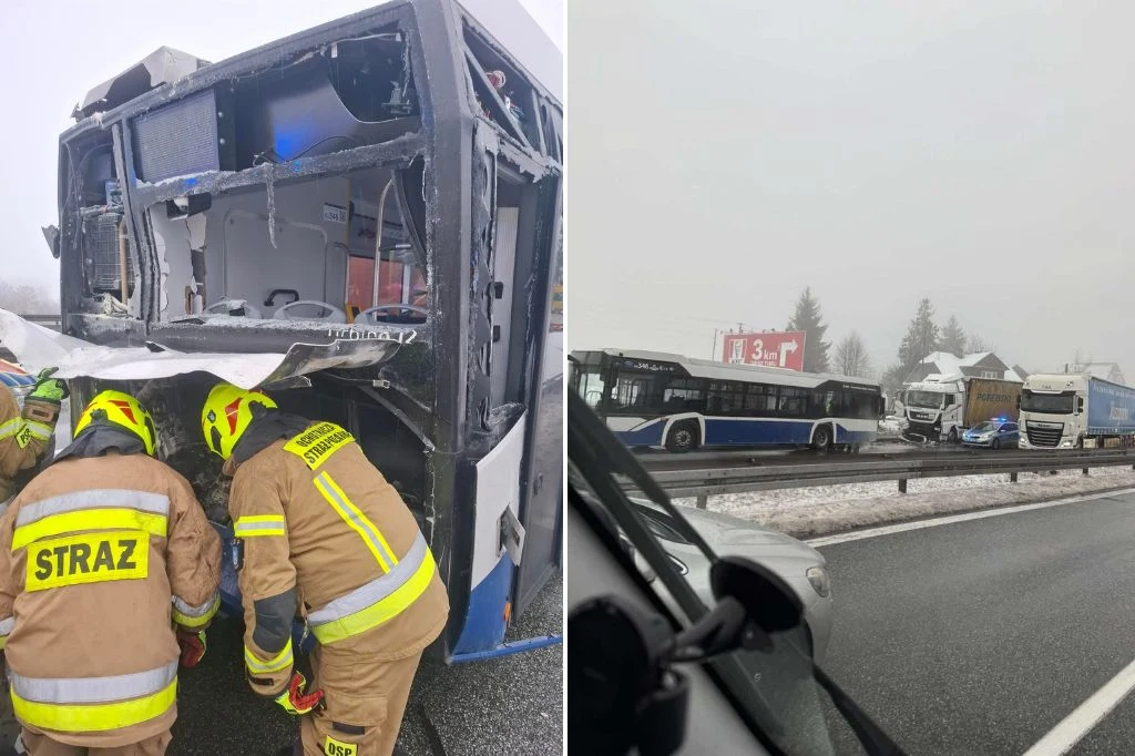 - Na Zakopiance w miejscowości Gaj doszło do zderzenia autobusu miejskiego z ciężarówką, co spowodowało poważne utrudnienia w ruchu.
