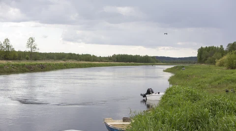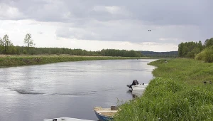Łódź zawisła na progu spiętrzającym na Wiśle. W środku rodzina z dziećmi