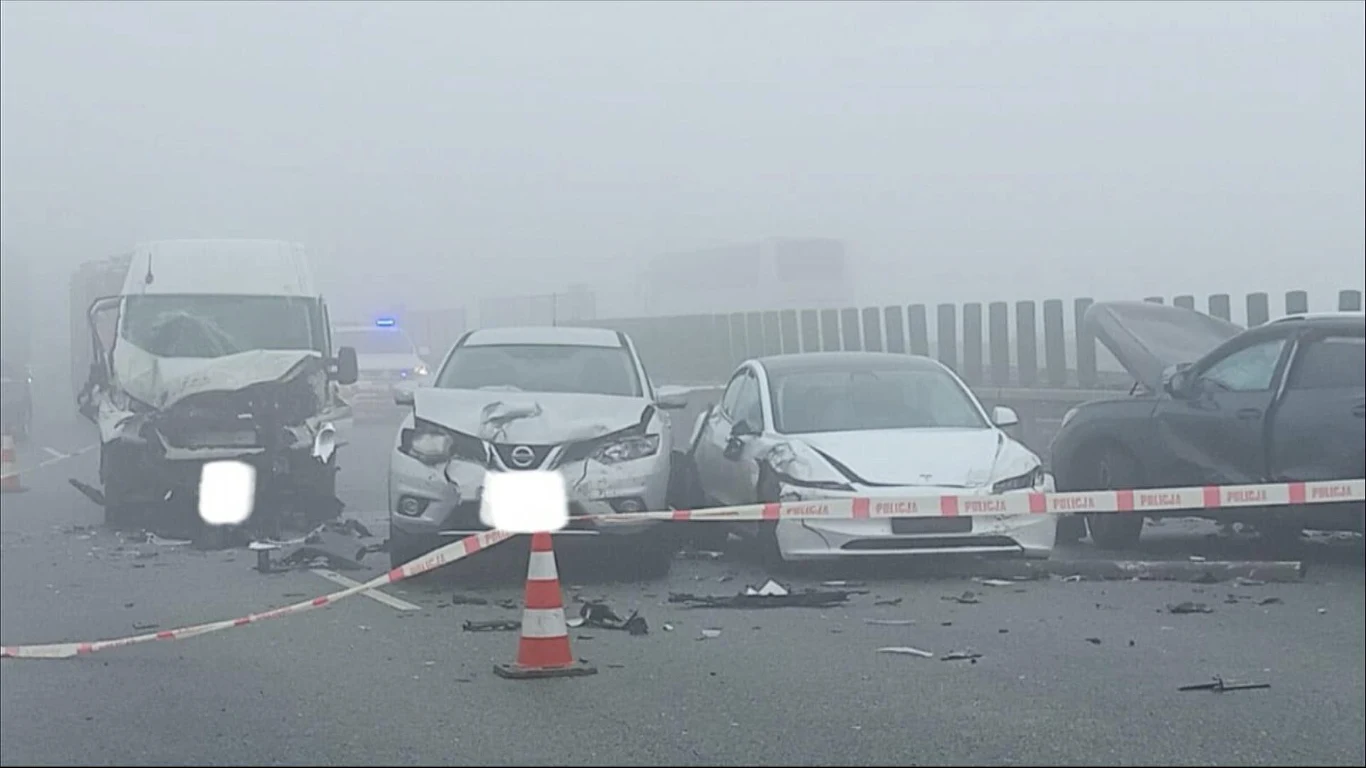 Szereg niebezpiecznych zdarzeń na A4 może być związany z trudnymi warunkami atmosferycznymi. W regionie panuje gęsta mgła, dlatego widoczność jest znacznie ograniczona.
