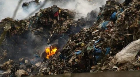 Strażacy piąty dzień walczą z pożarem składowiska śmieci