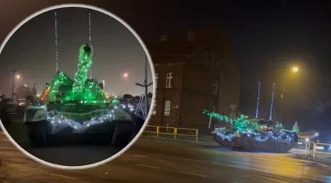 "Świąteczny" czołg przejechał ulicami Zabrza. Kierowcy przecierali oczy