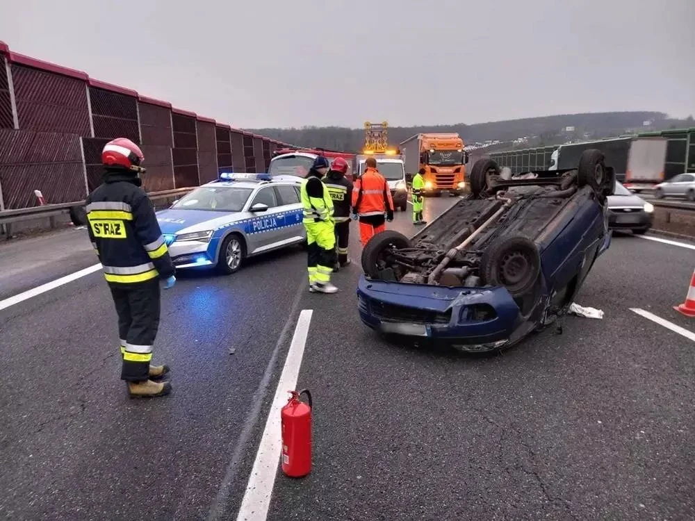Na autostradzie A4 doszło do dachowania samochodu osobowego. Kierująca nim kobieta podczas zmiany pasa wjechała na inne auto. W sieci pojawiło się mrożące krew w żyłach nagranie ze zdarzenia.