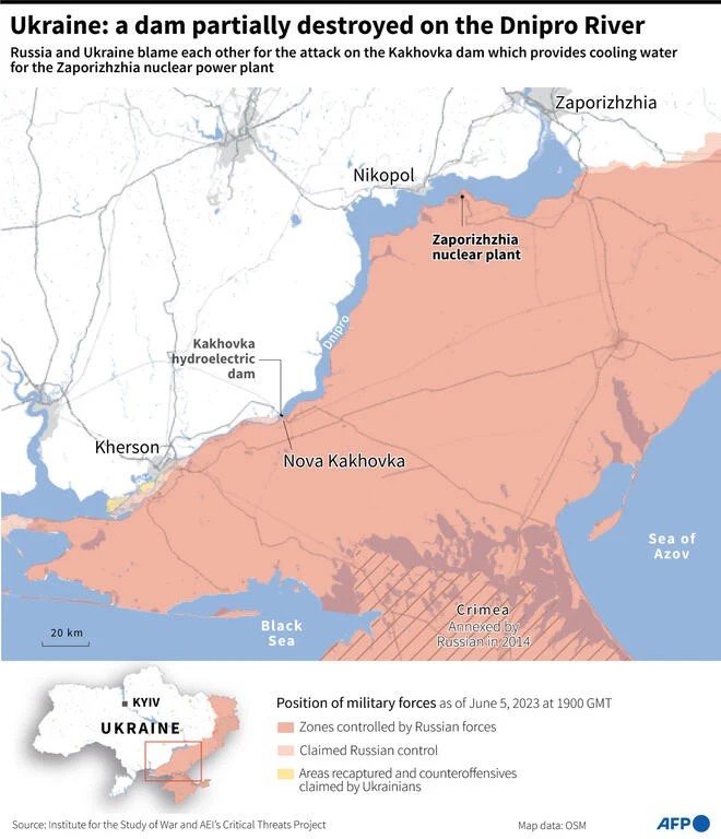 Rosjanie wysadzili w powietrze tamę na Dnieprze w Nowej Kachowce w okupowanej przez Rosję części obwodu chersońskiego na południu Ukrainy. Informację przekazały Siły Zbrojne Ukrainy. Zalanych może być ponad 80 miejscowości, w tym Chersoń.