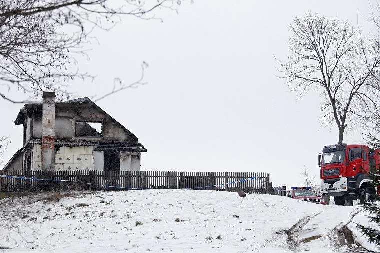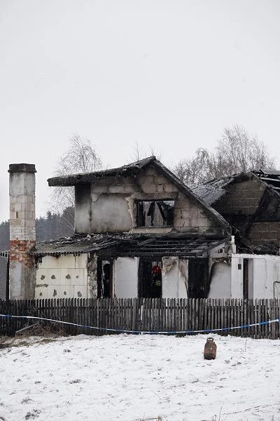 Zgliszcza domu we wsi Aleksandrowo k. Sejn. Do pożaru doszło ok. północy, w nocy z 16 na 17 stycznia. Zapalił się budynek gospodarczy z częścią mieszkalną. Zginęła matka z dwójką małych dzieci, ojcu udało się uratować / fot. Artur Reszko