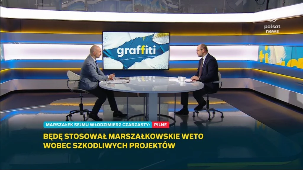 - Teraz pan marszałek Czarzasty jest dumny i będzie się tym szczycił, że mrozi projekty, czy to opozycji, czy pana prezydenta, a być może także obywatelskie - mówił w "Graffiti" szef biura polityki międzynarodowej w Kancelarii Prezydenta Marcin Przydacz, odnosząc się do słów marszałka Sejmu o "marszałkowskim wecie".