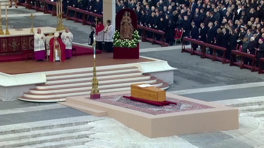 Papież Franciszek przewodniczył mszy pogrzebowej Benedykta XVI. Ciało papieża seniora zostało złożone w Grotach Watykańskich, miejscu, w którym wcześniej spoczywał także Jan Paweł II. We mszy pogrzebowej uczestniczyło ponad 120 kardynałów, 400 biskupów i 3700 kapłanów. Do tej liczby należy doliczyć tysiące świeckich wiernych zgromadzonych na Placu Św. Piotra i miliony śledzących wydarzenie za pośrednictwem mediów. Przez ostatnie trzy dni przed pogrzebem ciało Benedykta XVI było wystawione w Bazylice Św. Piotra. Emerytowany papież zmarł w wieku 95 lat.