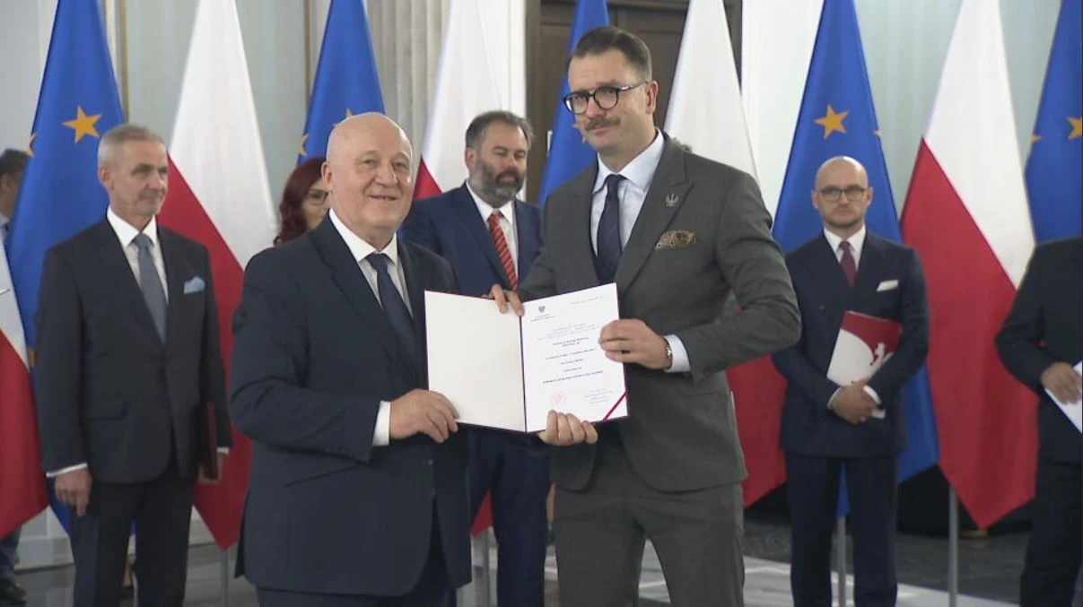 Wybrany z list Prawa i Sprawiedliwości z okręgu lubuskiego Łukasz Mejza z pewnością nie może zaliczyć ceremonii do wyjątkowo udanych. Podczas gdy szef PKW wymienił jego nazwisko, na sali było słychać buczenie.