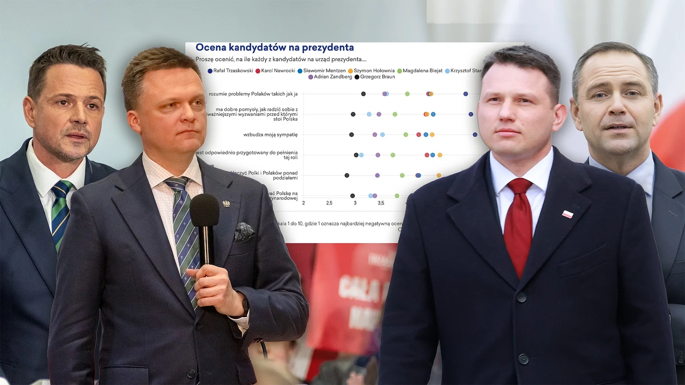 Rafał Trzaskowski jest też zdaniem Polaków najlepiej przygotowanym do pełnienia funkcji prezydenta kandydatem w stawce (5,75). Skład podium znów jest ten sam, bo za plecami wiceprzewodniczącego Platformy Obywatelskiej znaleźli się Szymon Hołownia (4,64) i Sławomir Mentzen (4,5), a pierwszą piątkę uzupełniają Karol Nawrocki (4,39) i Magdalena Biejat (3,73). Także w tym przypadku lider Konfederacji jest wyżej oceniany od prezesa Instytutu Pamięci Narodowej w każdym elektoracie poza elektoratem PiS-u.