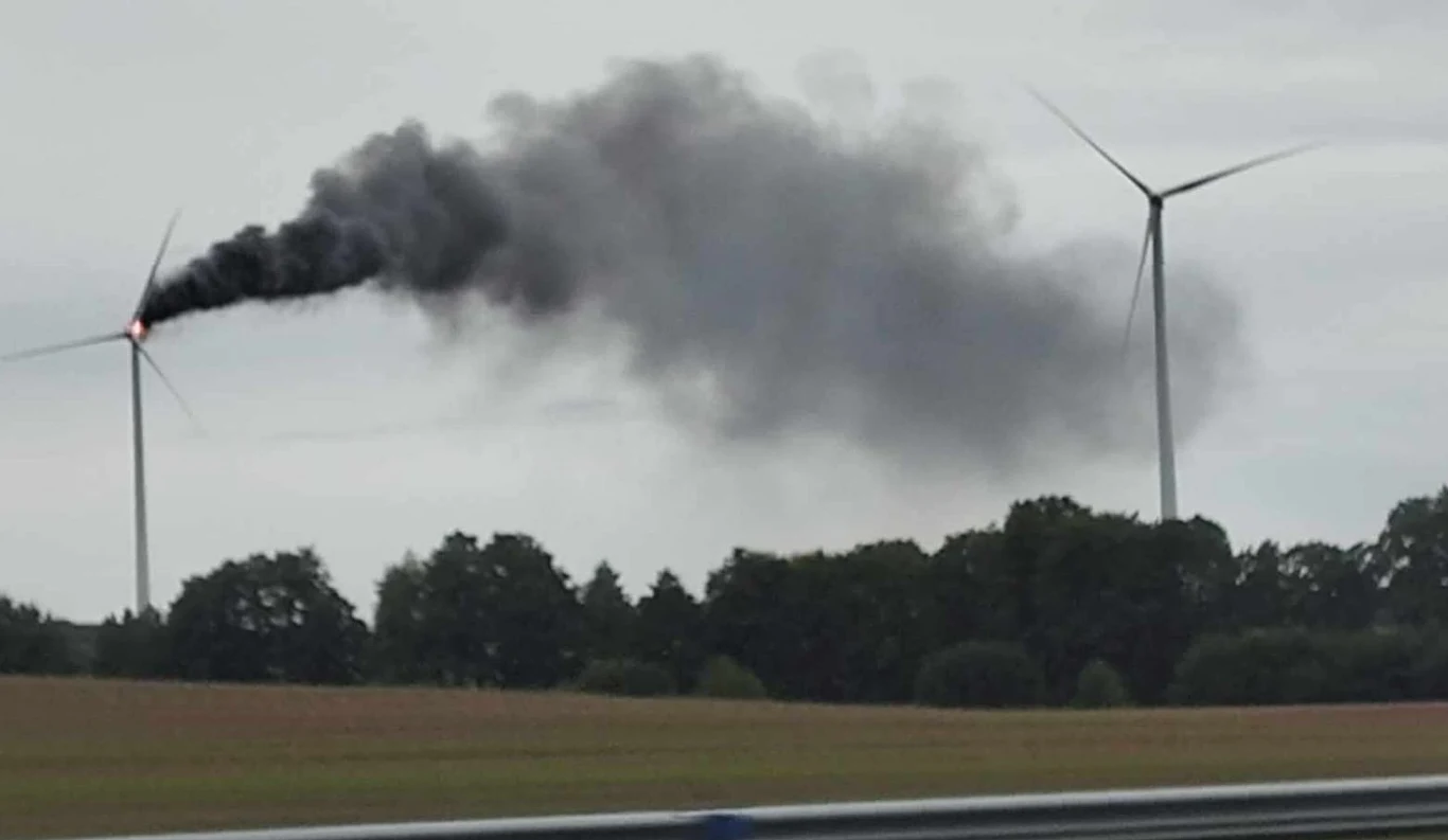 Kłęby czarnego dymu zaczęły unosić się nad miejscowością około godziny 9:00 i były widoczne w promieniu kilku kilometrów. Na razie nie wiadomo co dokładnie spowodowało wybuch pożaru. Jego źródło znajduje się na wysokości ponad 100 metrów, dlatego jak na razie strażacy nie podjęli próby gaszenia. Ogień zagraża maszynowni turbiny wiatrowej, uszkodzone mogą zostać także wirniki.