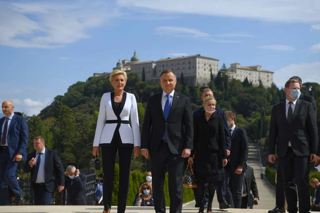 Prezydent Andrzej Duda i pierwsza dama Agata Kornhauser-Duda udali się w czwartek na Cmentarz Wojenny na Monte Cassino, gdzie wzięli udział w uroczystości upamiętniającej poległych polskich żołnierzy. Prezydent podkreślił na późniejszym briefingu, że wizyta przypada w roku, w którym obchodzimy 76. rocznicę bitwy o Monte Cassino. Jak zauważył, z powodu pandemii nie było możliwości, by przybyć na to miejsce w maju, kiedy dokładnie ta rocznica przypadała.