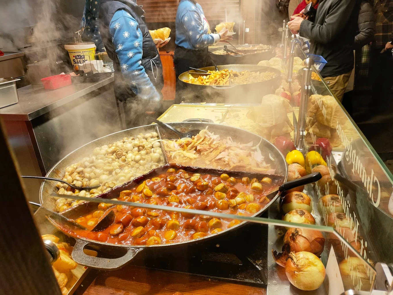 Po finansowym zamieszaniu zostało nam - na szczęście - wyłącznie delektowanie się przysmakami. Na pierwszy ogień poszły grzane wina, a tuż po nich niemieckie specjały kulinarne. Na jarmarku królowała kiełbasa w różnych wydaniach, zarówno jako currywurst, jak i pływająca w pomidorowym, doprawionym sosie.