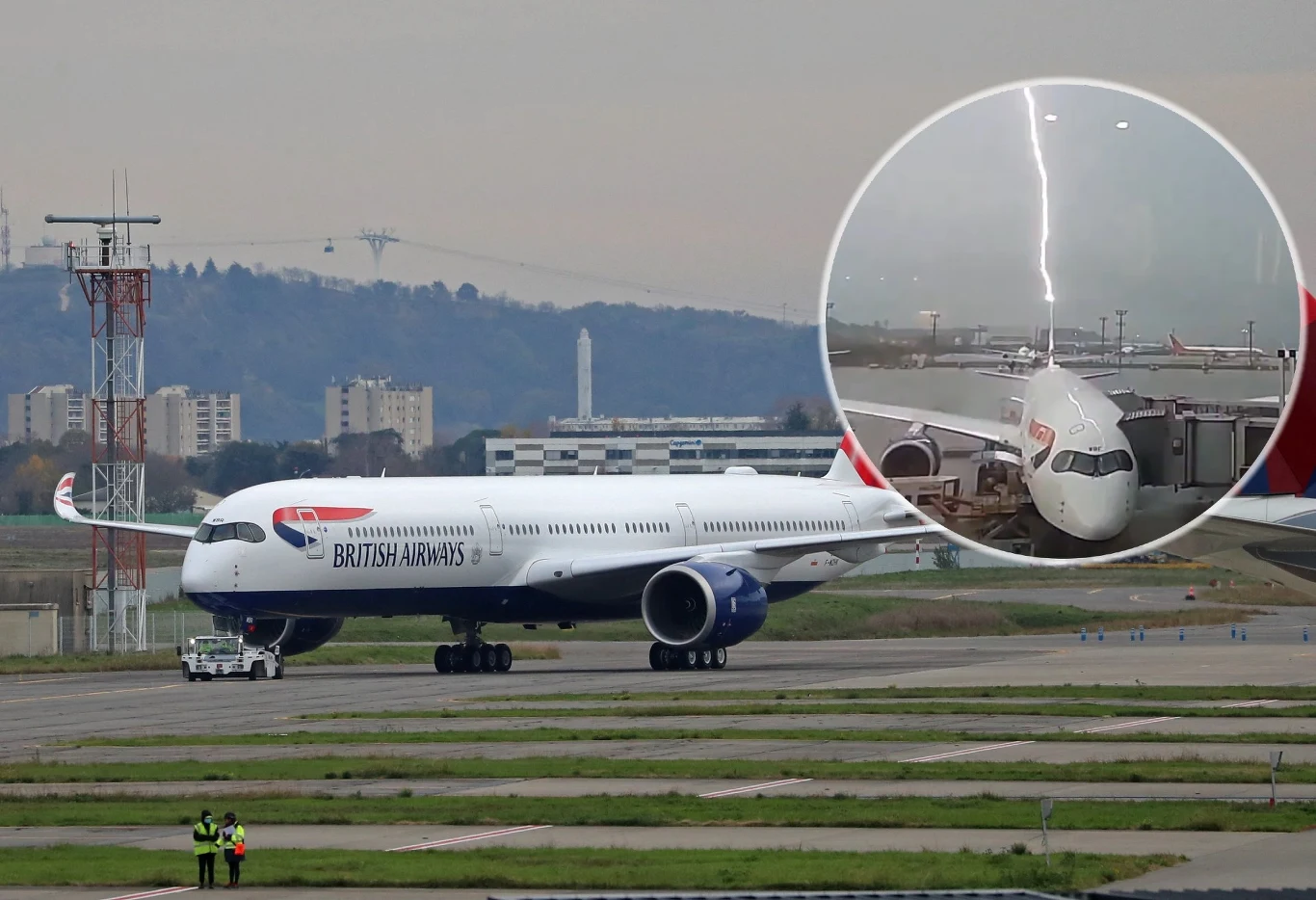 Na nagraniu zarejestrowanym przez jednego z oczekujących na lot zobaczyć można, że w ogon skąpanej w deszczu maszyny kilkukrotnie uderza świetlisty piorun. Rozbłysk trwa ok. ośmiu sekund, po czym gaśnie.