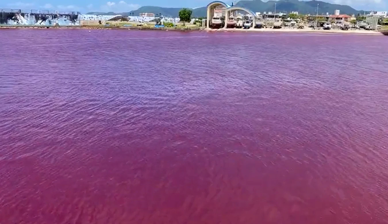 Turyści i mieszkańcy miasta Nago w Okinawie w Japonii przeżyli szok, gdy obudzili się we wtorek rano. Okazało się, że błękitna woda w rzece i miejskim porcie zmieniła kolor na ciemnoczerwony.