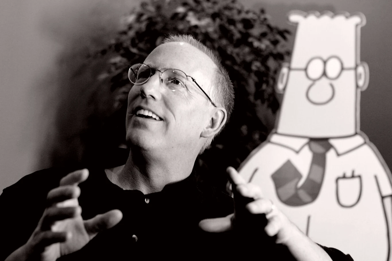 Scott Adams był znany jako twórca postaci komiksowej o imieniu Dilbert oraz serii pod tym samym tytułem. Bohater ten był ilustracją zmęczonego życiem kawalera w średnim wieku, pracownika korporacji.