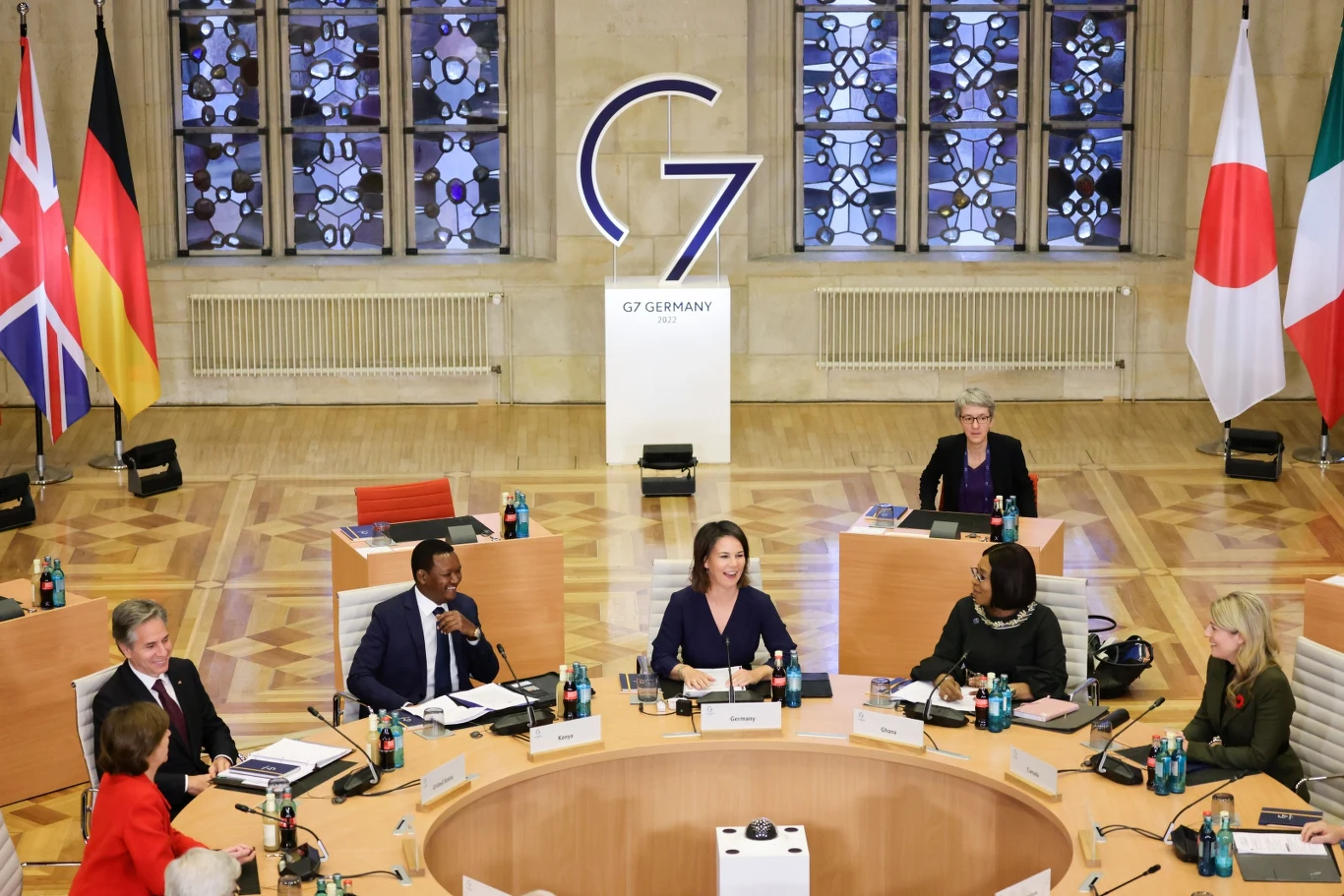Podczas dwudniowego spotkania zorganizowanego przez niemieckie MSZ ministrowie spraw zagranicznych G7 spotkali się m.in. w Sali Pokoju historycznego Ratusza. Na prośbę niemieckiego resortu historyczny 482-letni krzyż został stamtąd usunięty. Sala Pokoju to miejsce o dużym znaczeniu symbolicznym; to właśnie tam ponad 370 lat temu zawarto pokój westfalski, kończący wojnę trzydziestoletnią.