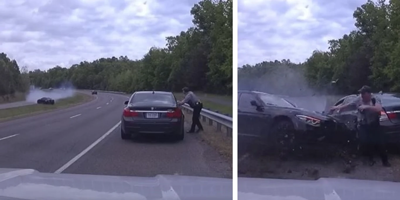 Do zdarzenia doszło przed godziną 12 w poniedziałek na przedmieściach Hrabstwa Fairfax. Na nagraniu widać wóz policjantów, którzy do rutynowej kontroli zatrzymali samochód osobowy.