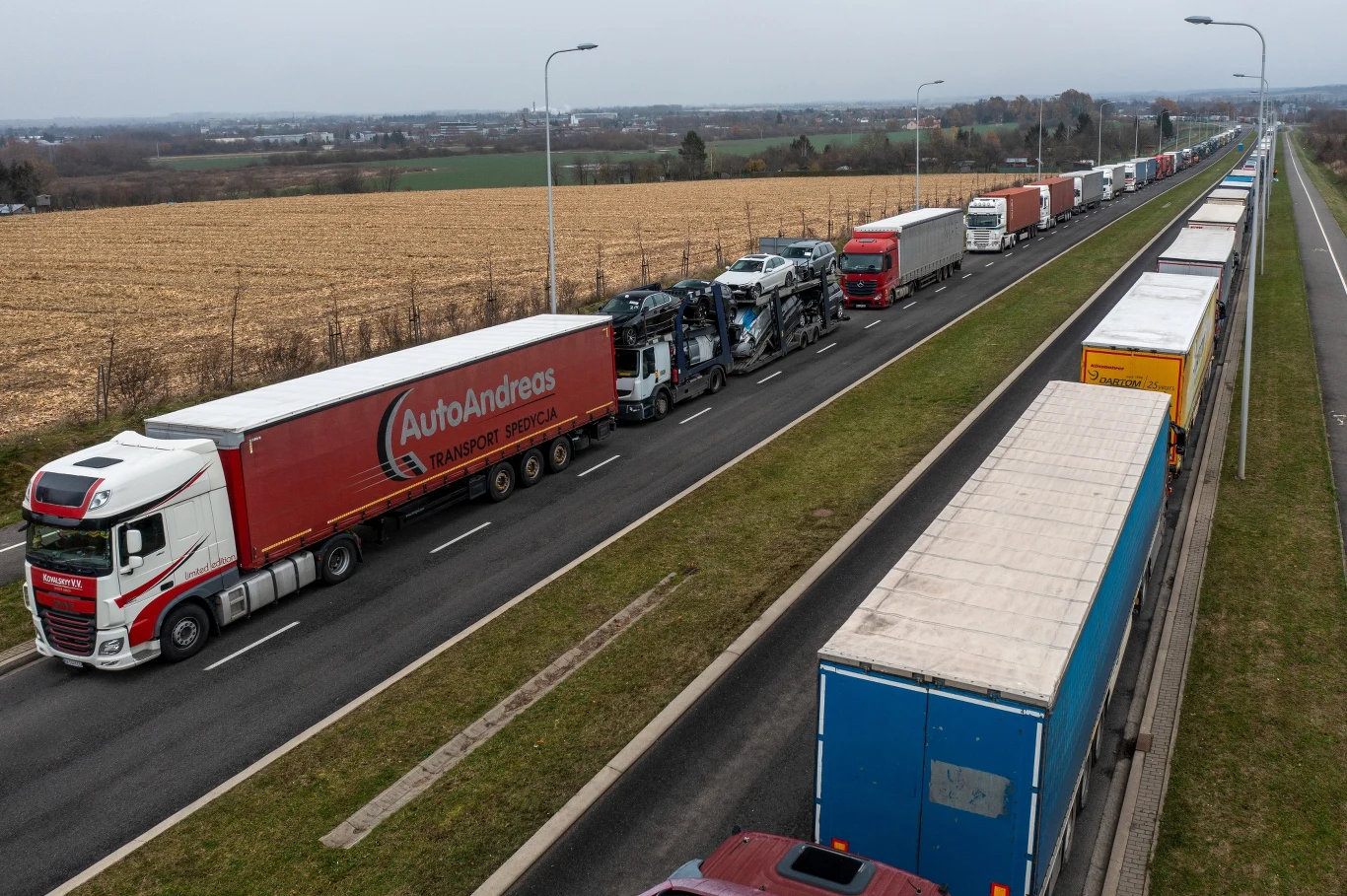 Protesty trwają obecnie na czterech przejściach - w Dorohusku i Hrebennem (woj. lubelskie) oraz w Korczowej i Medyce (woj. podkarpackie). Jaszczur podkreślił, ze "gestem dobrej woli" jest to, iż przewoźnicy zdecydowali, że nie będą na razie blokować kolejnych dwóch przejść granicznych.