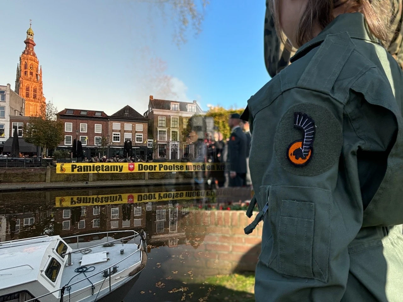 "Dzięki polskiej odwadze i sile nasze miasto zachowało swój blask" - taki napis w języku niderlandzkim widnieje na długim na kilkadziesiąt metrów banerze, który z okazji rocznicy zawisł nad kanałem w centrum Bredy.