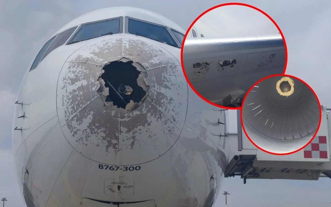 Samolot został uszkodzony przez grad
