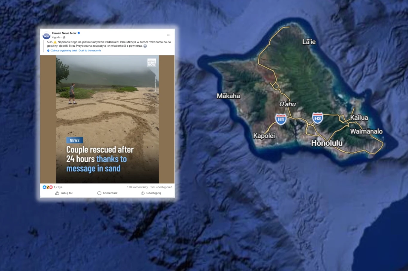 Niecodzienna akcja ratunkowa miała miejsce w zatoce Yokohama na Oahu - trzeciej co do wielkości wyspy amerykańskiego archipelagu na Pacyfiku. Choć jest to najbardziej zaludniona wyspa Hawajów, przez około dobę dwójka młodych ludzi nie była w stanie uzyskać pomocy od nikogo.
